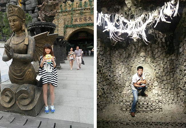 看完輕松詼諧的招婿表演,我們緊接著“馬不停地”的去失落古城去體味“驚悚刺激”的鬼屋驚魂:游離飄蕩的“鬼魅”,詐躺還起的“白衣”,哀怨幽幽的“鬼哭狼嚎”,再加上同行伙伴的捉弄玩笑,絕對(duì)是刺激驚悚。其實(shí)在宋城里面有兩處鬼屋,處在失落古城,第二處是在怪街那里,好像叫“聊齋驚魂”,雖然沒有古城那邊的人氣,卻也正是因?yàn)檫@樣,才更顯驚心動(dòng)魄。
