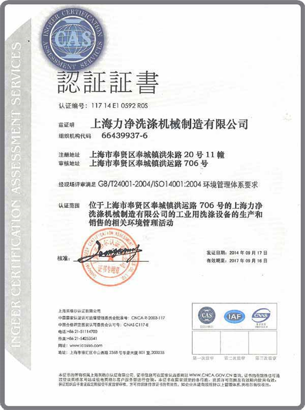 2、經(jīng)過全體員工近半年的努力,公司于2014年9月順利通過國家專業(yè)認證審核,獲取了ISO14001:2004環(huán)境管理體系認證;